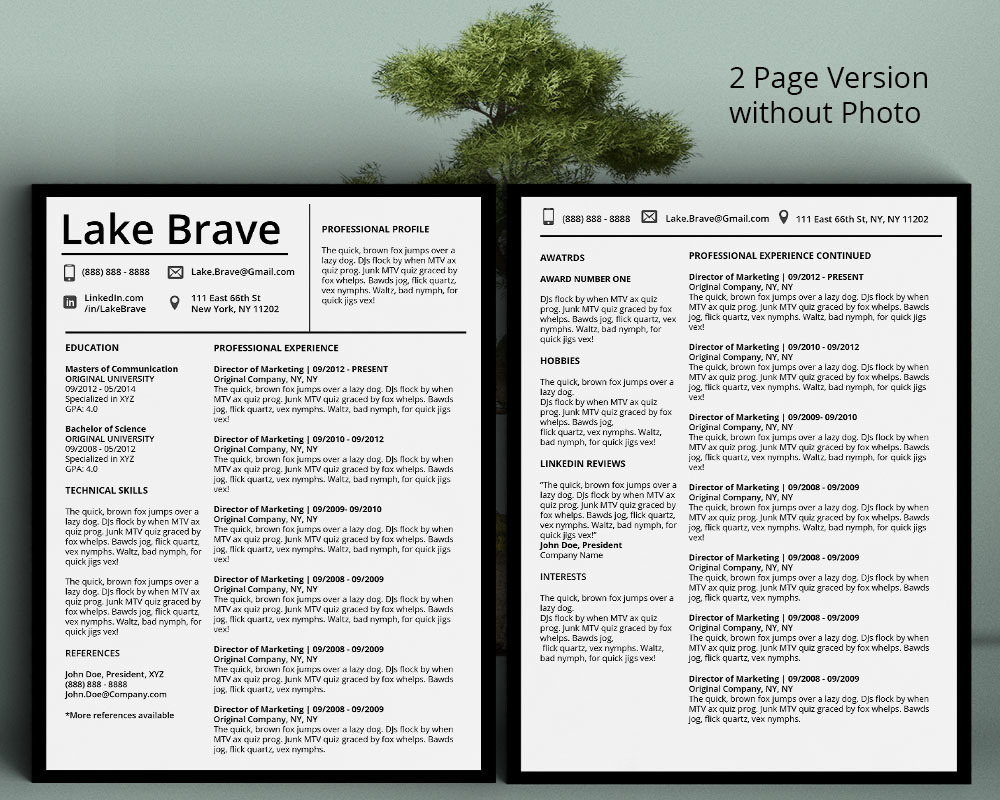 Lake Brave Modern Resume Template for Microsoft Word, Apple Pages, & Photoshop